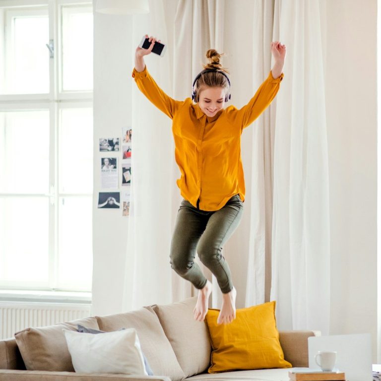 No you won't! Your core muscles engage involuntarily which means you'll feel stable on the rebounder and adopt a specific posture, lowering your centre of gravity. You don’t jump high like trampolining. You're in control all the time on the rebounder. In the early days your feet can even stay on the mat or very close to the mat surface!